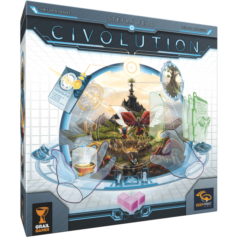 Civolution est un jeu de style européen moyennement lourd à lourd qui utilise un mécanisme de sélection de dés pour déclencher des actions sur une structure en forme d'arbre technologique. En trouvant la meilleure façon d'utiliser vos dés et de mettre en jeu vos cartes uniques, des tonnes de stratégies et de chemins vers la victoire émergent, bien qu'à chaque fois que vous jouez, vous n'explorerez qu'une fraction des possibilités offertes par le système du jeu et les nombreuses cartes.