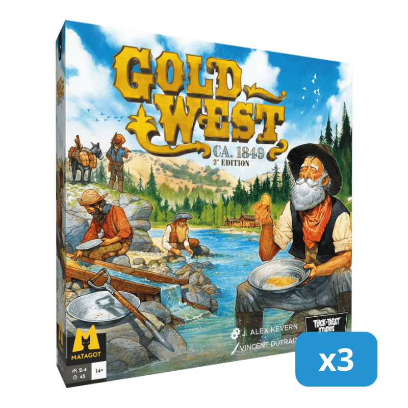 Dans Gold West, les joueurs incarnent des prospecteurs qui construisent leurs empires miniers tout en se disputant les métaux précieux de la frontière. Dans un équilibre délicat entre la gestion des ressources et le contrôle des zones, les joueurs doivent planifier leurs stratégies de construction tout en gérant soigneusement leurs voies d'approvisionnement afin de raffiner les bonnes ressources aux moments les plus opportuns. Gardez une longueur d'avance sur la concurrence et vous pourriez mener l'Ouest vers l'âge d'or.