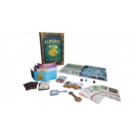 Mêlant jeu de pose d'ouvriers, aventure narrative et livre-plateau, Almanac : Les Sommets Cristallins est le deuxième opus de la série de jeux Almanac de l'auteur réputé, Scott Almes.