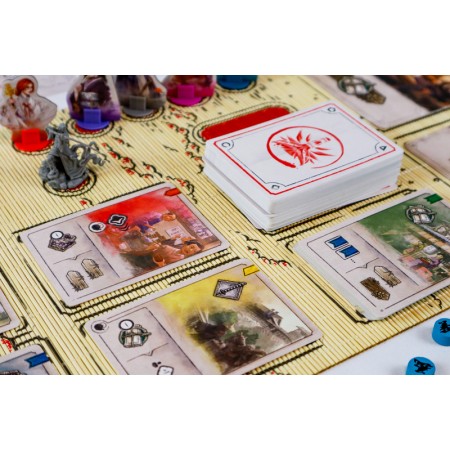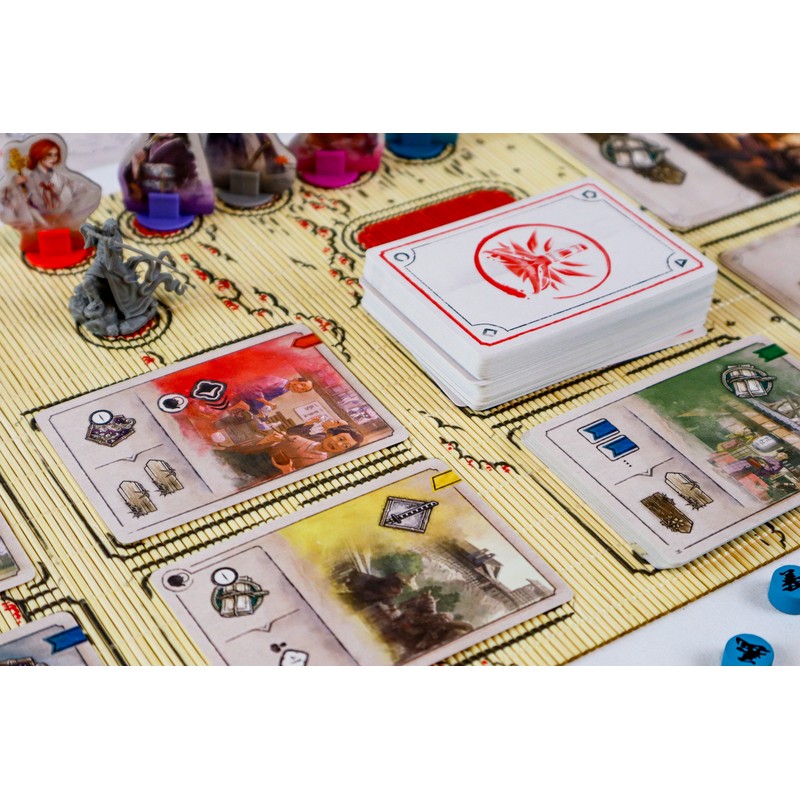 La variété des personnages, les pistes de partenariat et le nouveau jeu de cartes Action, plus volumineux, rendront chaque visite dans l'univers japonais de Witcher unique et captivante. La boîte contient 5 pistes de partenariat recto-verso, à placer entre les joueurs voisins. De nouveaux symboles et effets sur les cartes Action obligent souvent les voisins à déterminer des tactiques communes pour jouer les cartes. De nouveaux effets permettent aux joueurs de progresser sur leurs pistes et d'obtenir des bonus supplémentaires ensemble. Les cartes de compétence de personnage spéciales renforcent également le sentiment de tisser des liens. Certains effets de la piste de partenariat vous permettent d'utiliser les compétences spéciales de vos compagnons assis à côté de vous. Faites confiance à vos partenaires, mais concentrez-vous sur vos propres objectifs !