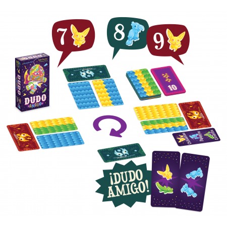 Dudo Amigo est un jeu de cartes compétitif dans lequel votre équipe doit estimer le nombre d’un type de bonbon présent dans la Piñata.